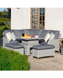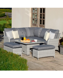 Richmond Corner Rattan Bench Set with Rising Table - Grey